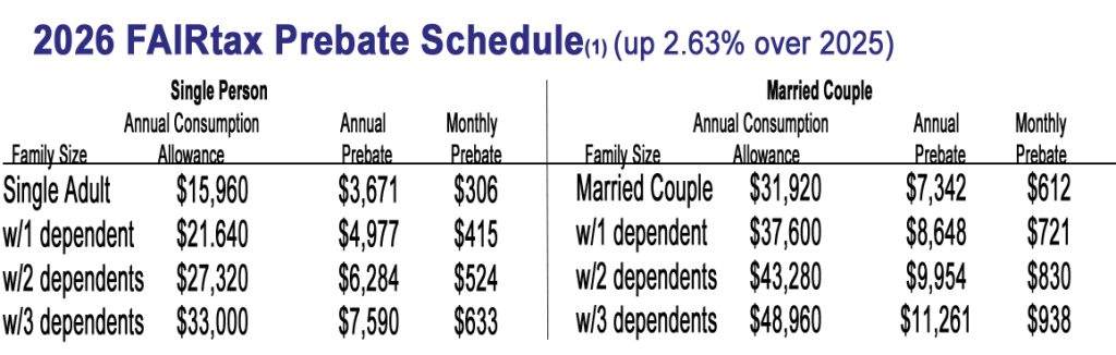 2026 FAIRtax Prebate Schedule